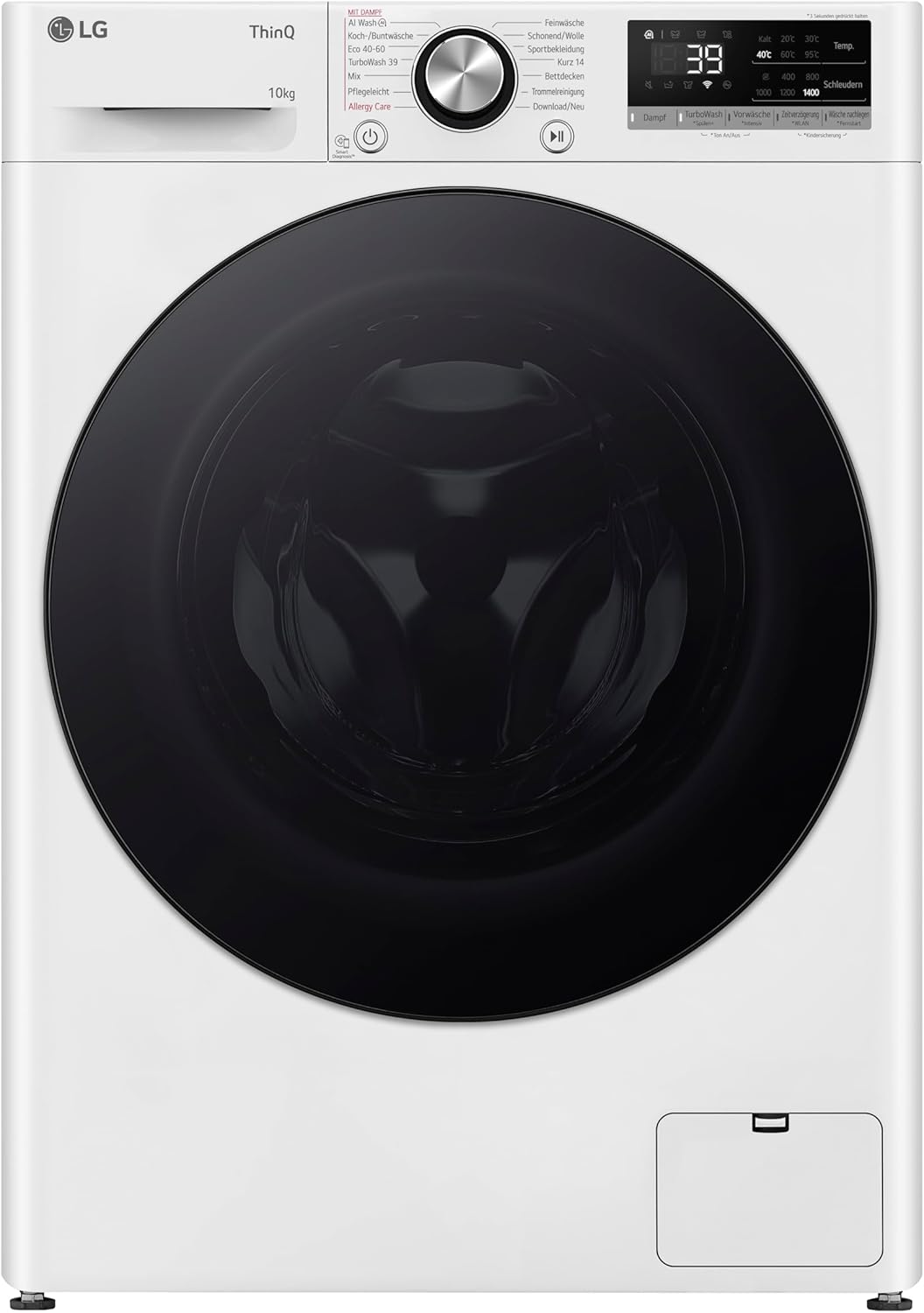 INTELLIGENTE WASCHMASCHINE: Mit Wi-Fi-Verbindung und der App SmartThinQ können Sie Ihre Wäsche aus der Ferne verwalten, neue Waschprogramme herunterladen und Ihre Waschmaschine über Smart Pairing mit Ihrem LG Trockner verbinden